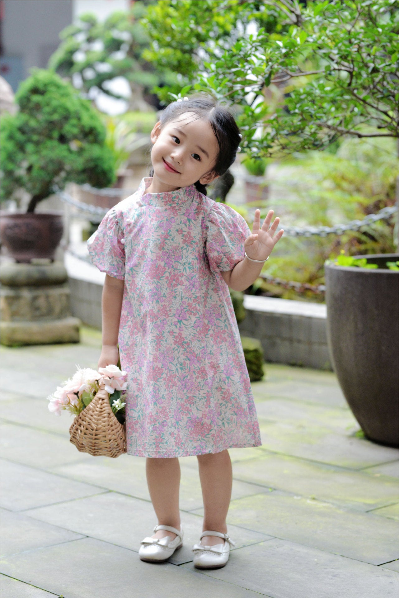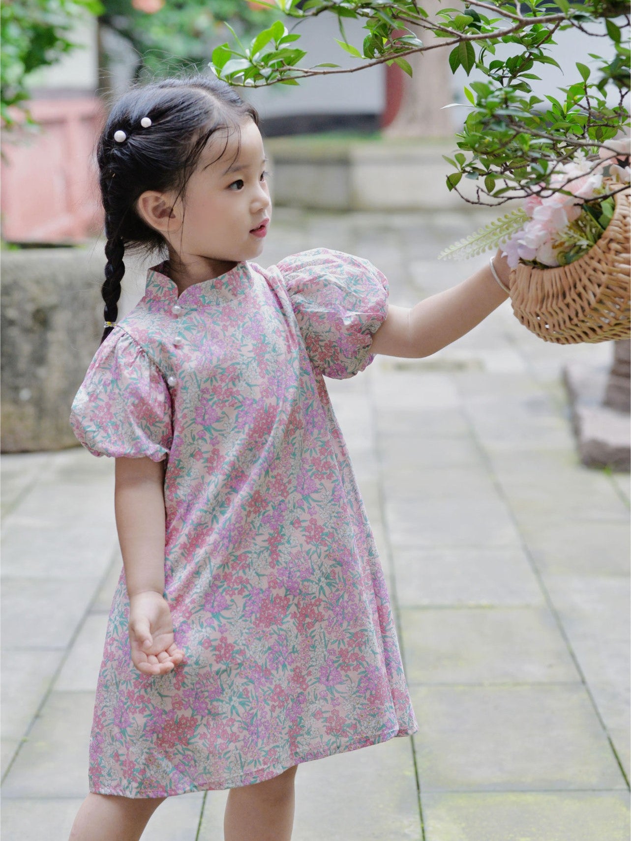Girls Impatiens Pink Puff Sleeve Cheongsam Dress
