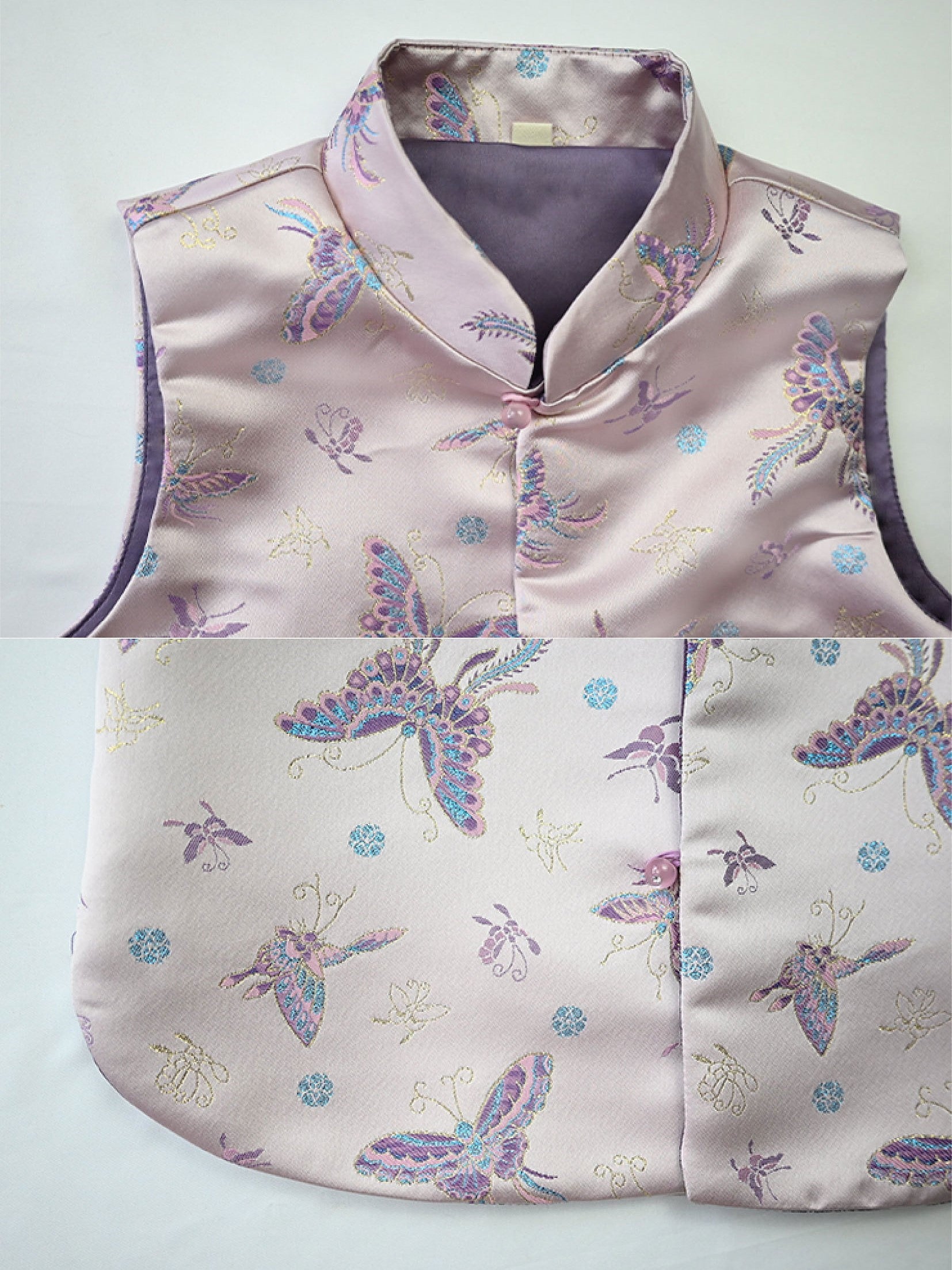 Girls Purple Butterfly Cheongsam Vest with Skirt